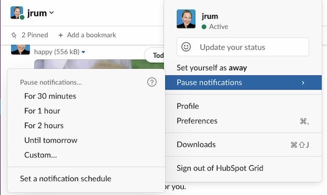 Different work cultures have different expectations for availability on Slack. But there are times when employees need some uninterrupted work time. So, instead of closing a door or hanging a "Do Not Disturb" sign, pause your notifications.