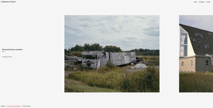 As a Photographer in Montreal, Guillaume Tomasi has built a portfolio that's truly fit to house his unique and awe-inspiring photography. His surreal photo style is juxtaposed by his simple, flat, empty, and minimalistic portfolio design that places all of the focus on the work itself.