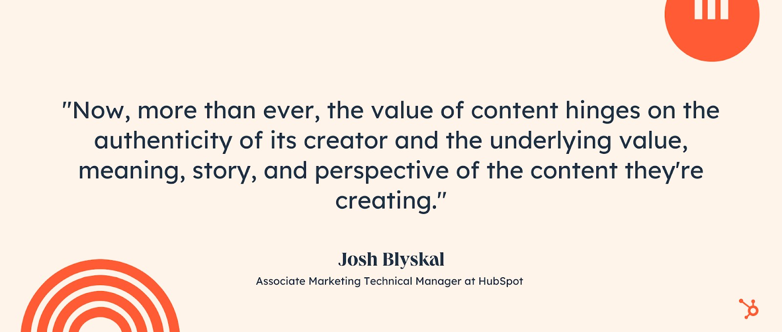 "Now, more than ever, the value of content hinges on the authenticity of its creator and the underlying value, meaning, story, and perspective of the content they're creating," Josh Blyskal, Associate Marketing Technical Manager at HubSpot, told me.