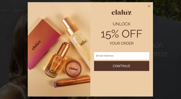 Why it's effective: If you go to leave the Elaluz landing page an offer appears on the screen with a 15% off discount. Whether a visitor was thinking about moving forward with a purchase at that moment in time, the coupon is enticing for anyone on the site.