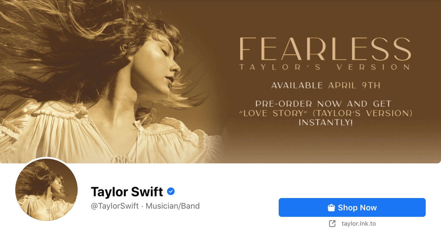 Fortunately, I was able to find the mega-pop star's page easily, with the help of a small blue badge:
