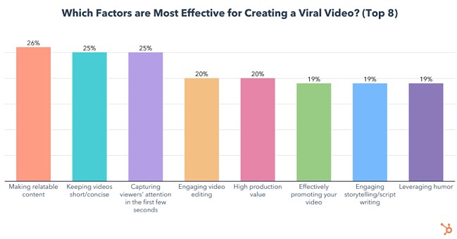 Keeping videos short is also crucial to virality. According to 47% of video marketers, short-form videos are the most likely to go viral.