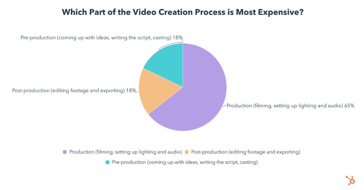We also asked video marketers which part of the video creation process is most expensive, and 65% of them say production is the costliest step.