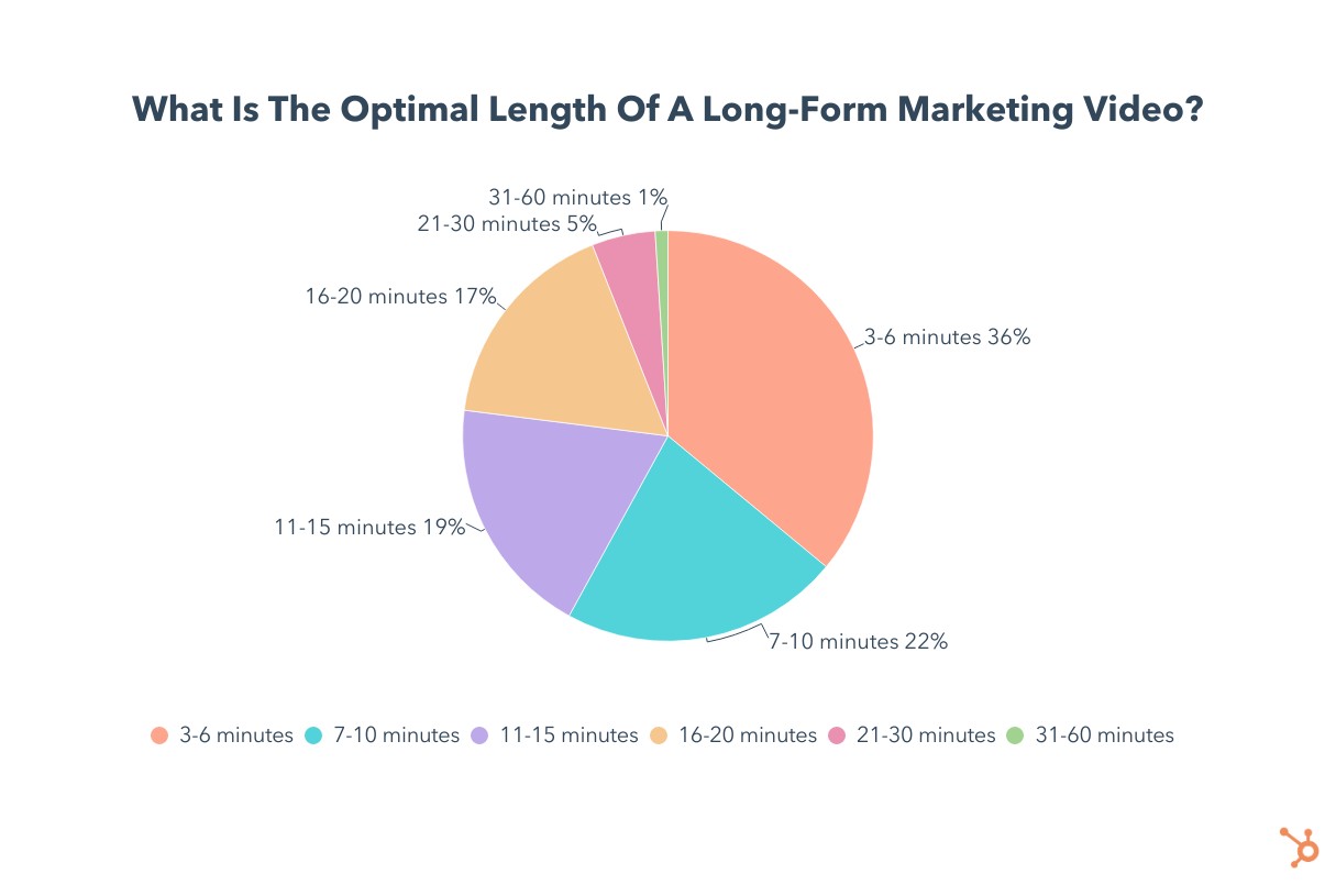 The biggest chunk of video marketers (36%) say the ideal length for long-form videos is 3-6 minutes, though many also advocate for videos up to 20 minutes long.