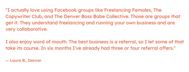 As for social media, there are plenty of freelancer Facebook groups you can join and engage with. Some groups give work, while others simply offer a place to chat and ask questions. If you’re on Slack, you can also hop into a freelancer Slack community.