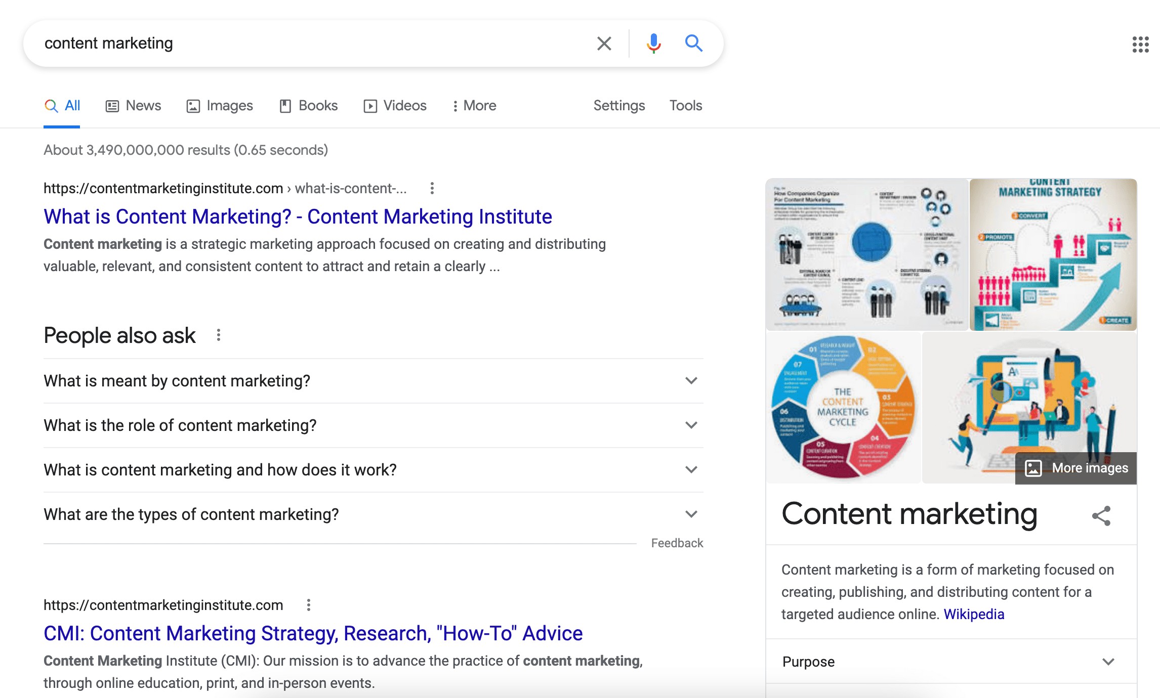For instance, if I search for "content marketing", Google provides results around the definition of content marketing, since the intent is fairly broad: